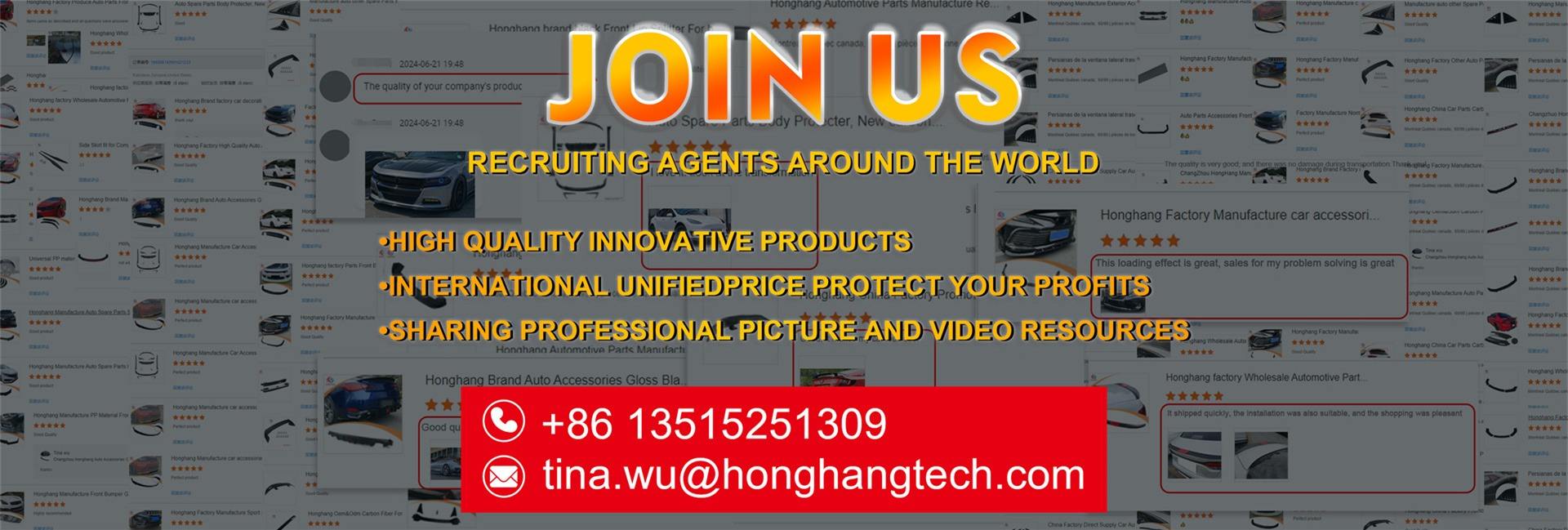 Changzhou Honghang Auto Parts Co., Ltd. was established in 2012. The company is located in the world-famous production base of automobile and motorcycle parts. The company covers an area of 5000 square meters, including workshops and warehouses. Over 200 molds are developed for new products every month. We specialize in producing all kinds of front lip, rear lip, rear spoiler, top spoiler, side skirt, side spoiler, front grille for general purpose, American style, German style, Japanese style, we provide more than 100 different types. We have passed the ISO9001 international quality management certification, in order to ensure product quality, we manufacture in strict accordance with international standards. We provide excellent customer service to achieve customer satisfaction. So we keep good business relationship with old customers. Our goal is win-win together!